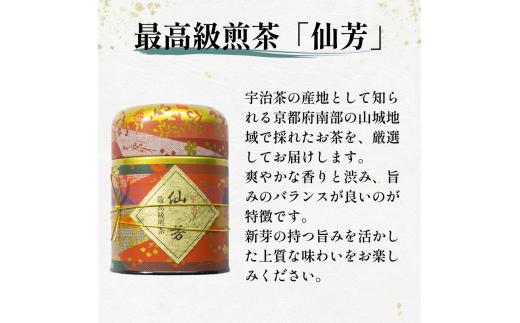 最高級 宇治煎茶 & 煎茶茶碗 セット 宇治煎茶(仙芳)100g 缶入り 煎茶 小川武治茶舗 海峰窯 コラボ商品 絵付け茶碗 セット 茶葉 お茶 日本茶 国産 最高級 京都 京都府 井手 井手町 【092】