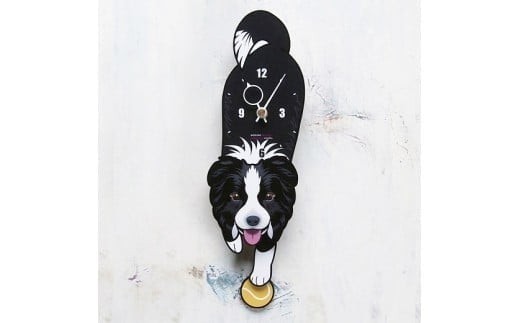 D-66W1 ボーダーコリー-犬の振り子時計毛糸玉01.ORANGE C-CD-066A