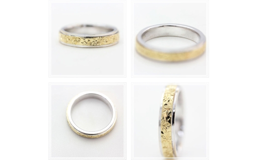 指輪 プラチナ PT900 K18YG イエローゴールド コンビ 5号〜14号 レディース リング 桜 手彫り彫刻 18金 マリッジリング 和風 アクセサリー ジュエリー アクセ 【239-ptyg】 [オーダーメイドジュエリーメイ 山梨県 韮崎市 20745070-o]