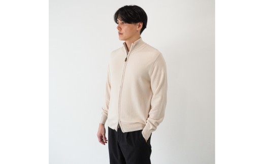 - ベビーカシミヤ フルジップ メンズ Lサイズ 【ベージュ】 【カシミヤ 天然素材 セーター 服 国産 国内製造 ベビーカシミヤ】