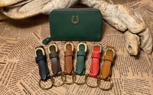 蹄鉄ラウンドファスナーコインケース(グリーン)&蹄鉄バックルキーリング (ダークブラウン) 栗東市 / 株式会社ブルズエフ [BIAU344]