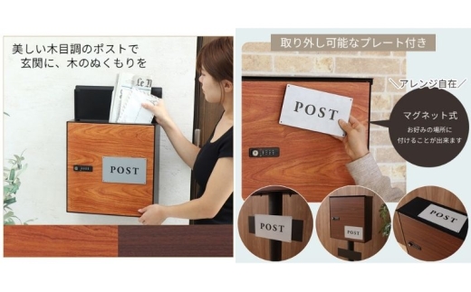 - 木目壁掛けポスト arble(アーブル) ブラウン
