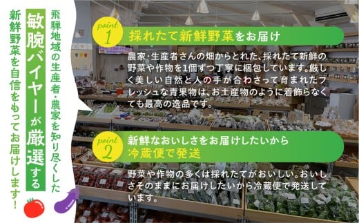 - 【4回定期便】飛騨の四季のお野菜 旬定期便 4回お届け 産直市から直送! 飛騨産 旬の新鮮 野菜セット (5~6品)