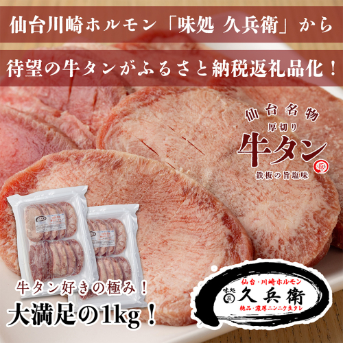 仙台名物 厚切り牛タン 鉄板の旨塩味 1kg 【04324-0347】