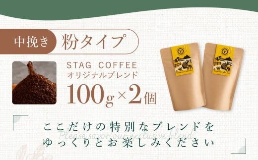 - STAG COFFEE オリジナルブレンド豆 【コーヒー中挽き100 g×2 個セット】【ふるさと納税 人気 おすすめ ランキング コーヒー 珈琲 ソフトドリンク コーヒー豆 珈琲豆 中挽 セット オフィス用 北海道 美幌町 送料無料】BHRT005