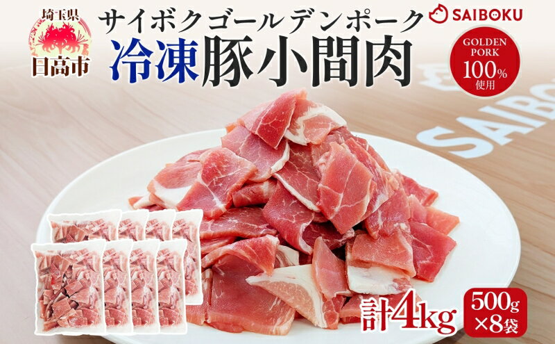 【ふるさと納税】サイボク 冷凍 ゴールデンポーク 小間肉 4kg 500g 8袋 銘柄肉 こま切れ やわらか 赤身 炒め物 カレー 煮物 肉汁 ジューシー チャック付き ストック食材 冷凍保存 お取り寄せ 埼玉県 日高市