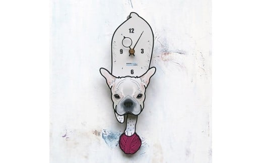 - D-58F4 白ブルドッグ-犬の振り子時計花04.YELLOW C-CD-058A