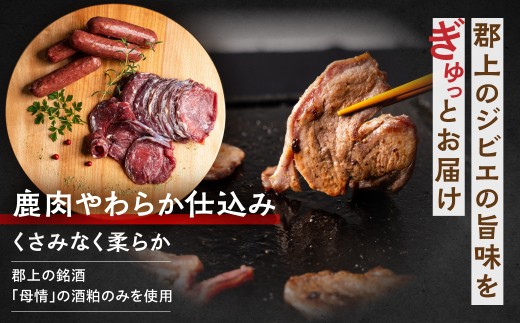 郡上産 ジビエ 鹿肉やわらか仕込み&明宝ジビエフランク 味付き肉 酒粕使用 食品 肉加工品 鹿肉 シカ肉 フランク ワインに合う バーベキュー 焼肉 焼き肉 赤身 赤身肉 ジビエ工房めいほう 15000円