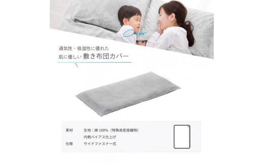 防ダニ 敷き布団カバー セミダブル 125×215cm【サックスブルー】