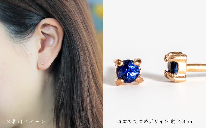 - 【9月誕生石サファイアピアス】K10イエローゴールド 美しい天然石のスキンジュエリー 両耳セット / K10-06-09