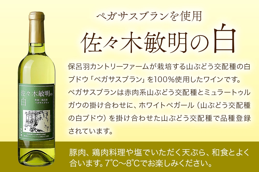 - 佐々木敏明の赤白飲みくらべ 秋田・保呂羽ヒマラヤベイリー /ペガサスブラン 720ml×各1本 計2本