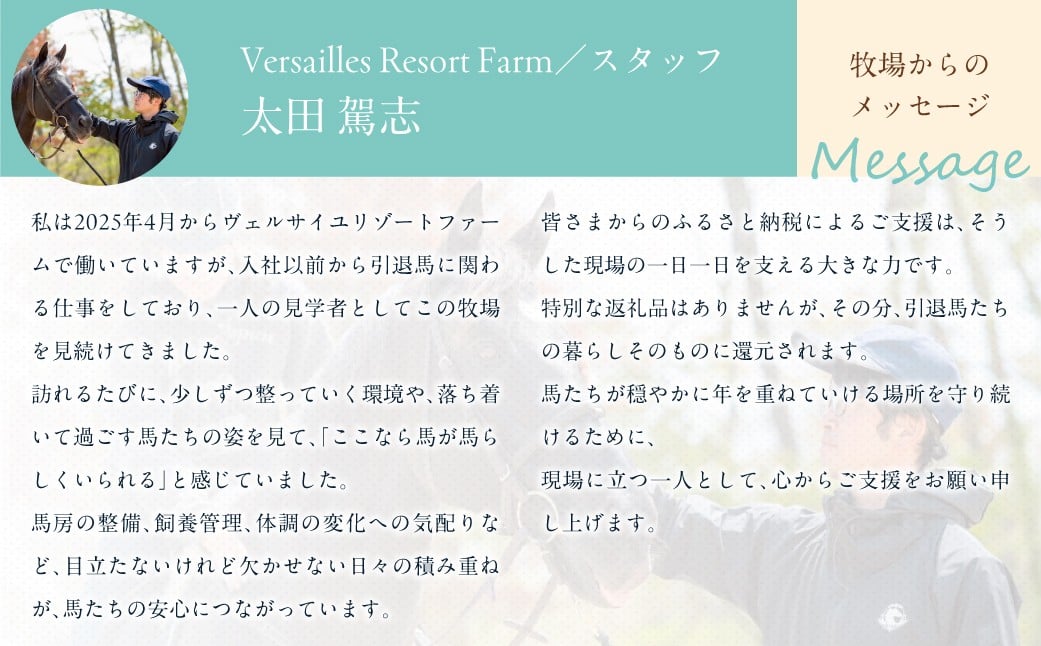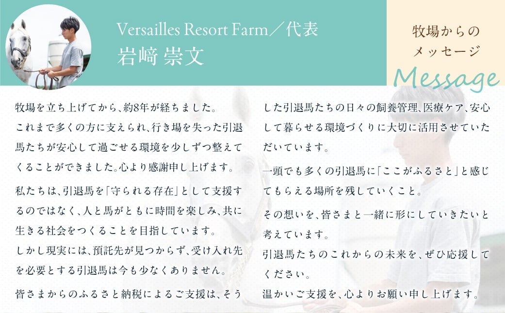 - 【選べる寄附額 返礼品無し】より多くの引退馬の幸せな余生を願う Yogiboヴェルサイユリゾートファーム(1口 1,000円~1億円)【ふるさと納税 人気 おすすめ ランキング 馬 競馬 競走馬 引退馬 高齢馬 養老牧場 北海道 平取町 送料無料】BRTV024-v