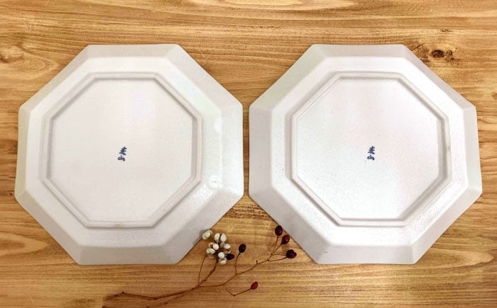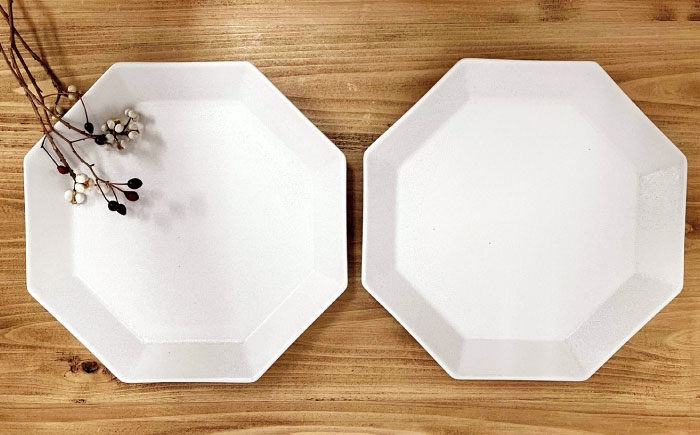 - 【瀬戸焼】 八角メイン皿 ペア アイボリー 【まるたか水野コーポレーション】 / 食器 皿 プレート 陶器 / 瀬戸市 [BBBF028]