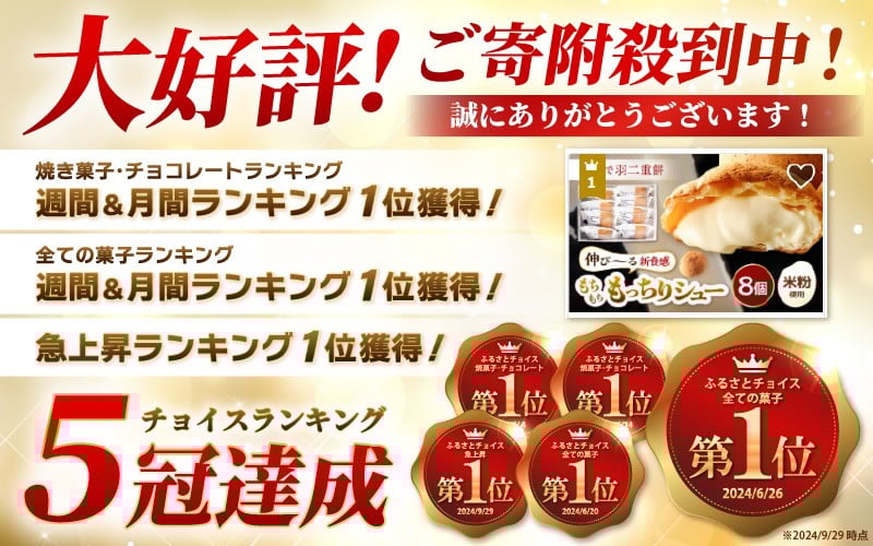 - 【ランキング1位5冠獲得!】 大人気スイーツ! くりーむたっぷり羽二重もっちりシュー 8個【シュークリーム カスタード クリーム 羽二重餅 スイーツ お菓子 おやつ デザート 洋菓子 焼菓子 個包装 冷凍 チョイス焼菓子 カテゴリ】 [A-08193]