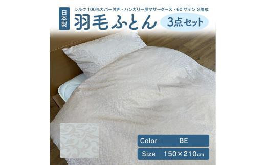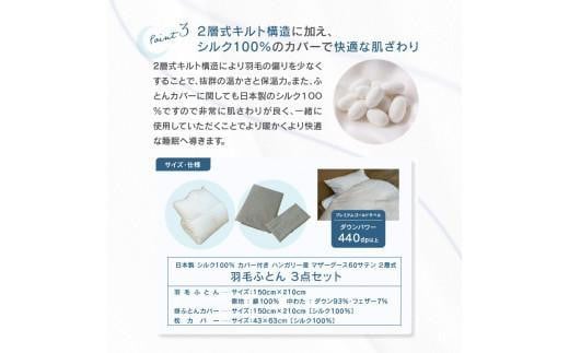 日本製 シルク100% カバー付き ハンガリー産 マザーグース 60サテン 2層式 羽毛ふとん 3点セット 【色んなお色が選べます♪】