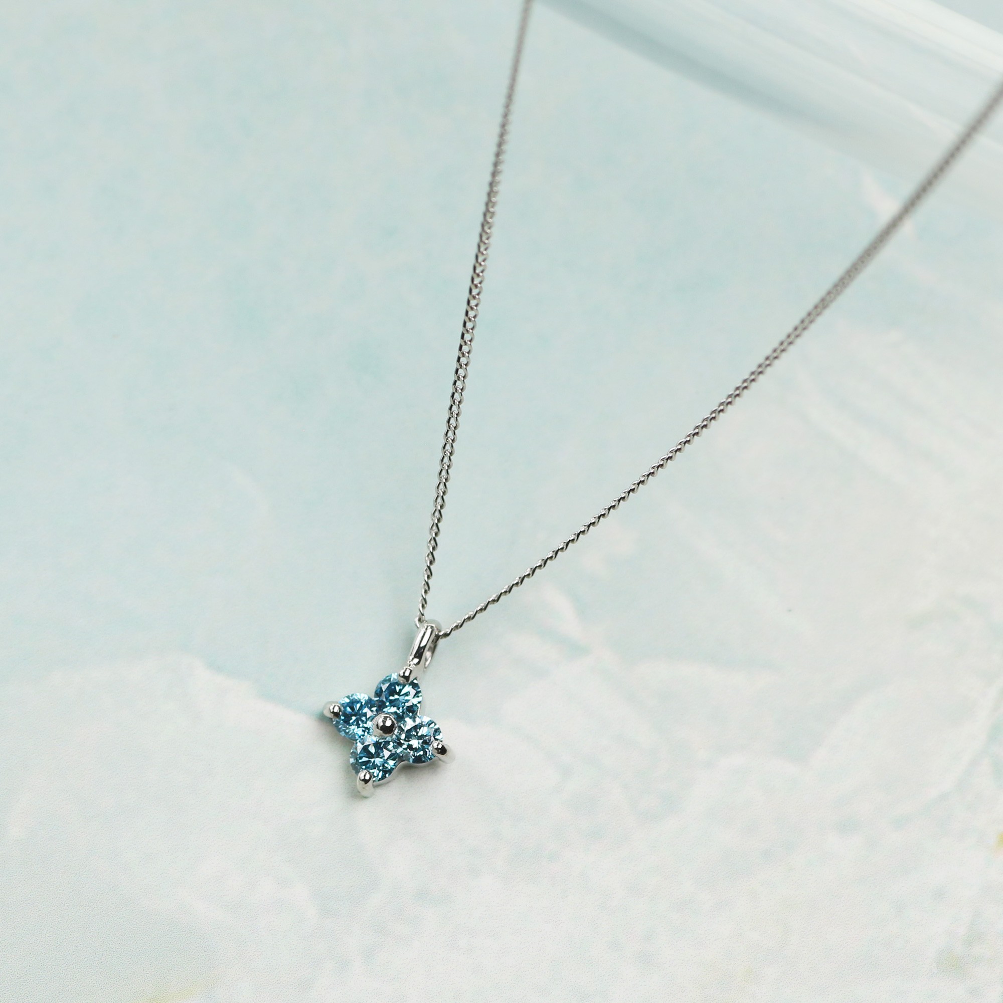 - プラチナ900【ラボブルー 0.132ctダイヤモンドネックレス】 PT900-KN01001LBL [AM327] / プラチナ900 ブルーダイヤモンド ダイヤモンド ダイアモンド ダイヤ ネックレス フラワーデザイン アクセサリー ギフト プレゼント