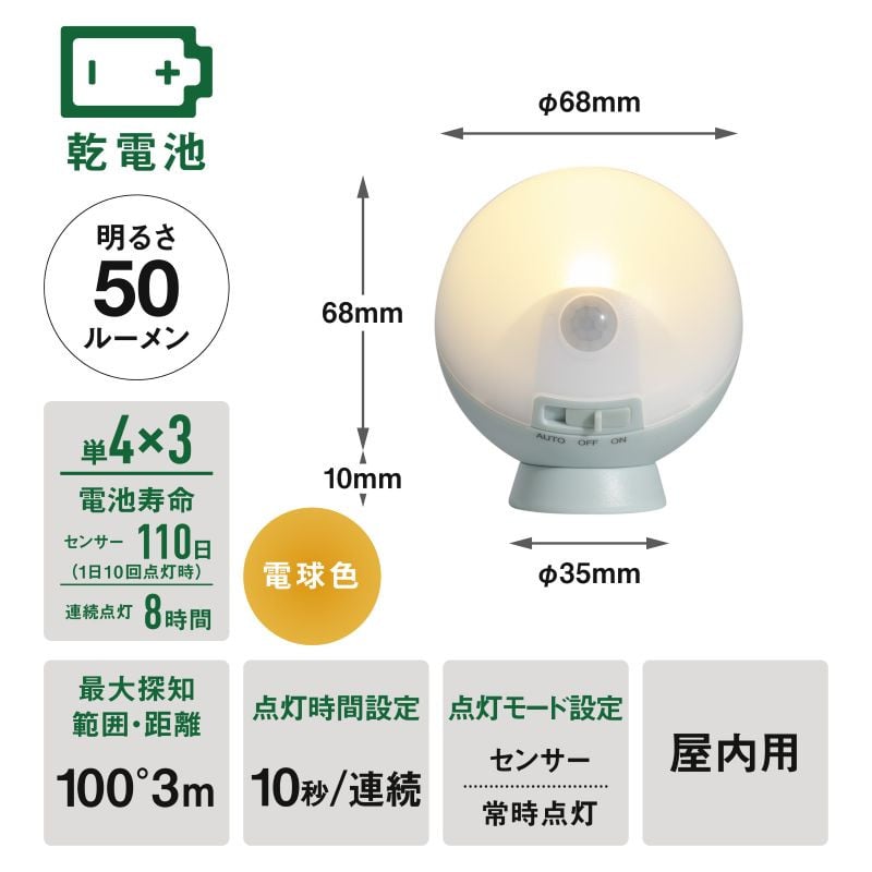 - musashi てのりまんまるライト【3色カラバリ】《 センサーライト 防犯 ライト LEDライト 玄関 寝室 照明 》【2400O10833】