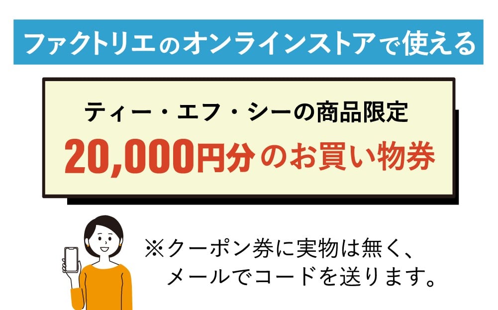 - 【クーポン券】ファクトリエで使える20,000円分のお買い物券(ティー・エフ・シー商品)
