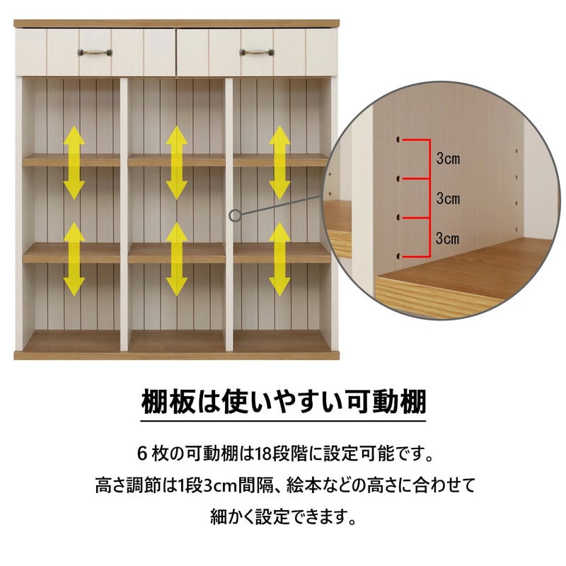- 幅90cm カントリー風引出付き絵本棚 CR-9090H 【選べるカラー:ホワイト / ブラウン】 日本製 ≪寄付者様組み立て品≫ 【絵本ラック 絵本棚 書棚 オープン書棚 絵本 棚 稼働棚 移動棚 子供部屋 ラック オープン 木製 リビング収納 新生活 国産】 [H-18810]