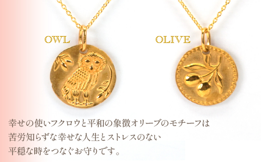 K24 コイン フクロウ/オリーブ ネックレス 管理番号254973 ×1本 218-027