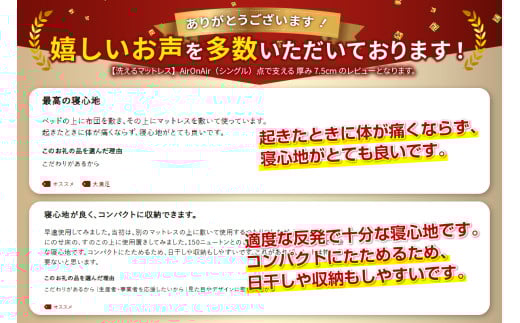 - 【洗えるマットレス】AirOnAir(シングル)点で支える 厚み7.5cm シングルマット 寝具 シングル マットレス AirOnAir 洗える 山梨 富士吉田