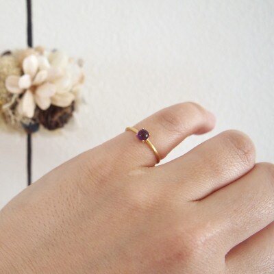 5号 天然石 アメジスト リング (Silver925 18KGP仕上げ) 指輪 / Maco アクセサリー シルバー ヘアライン加工 プレゼント 奈良県 田原本町