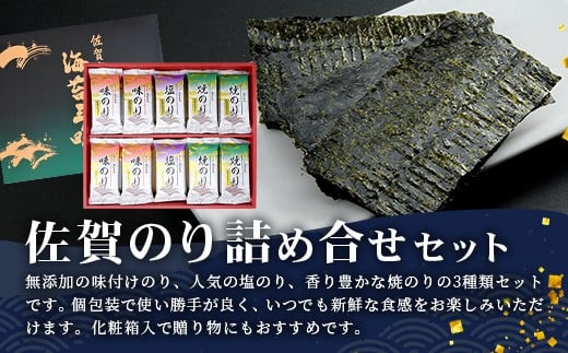 佐賀のり 3種 詰め合わせ セット 合計80枚 焼海苔 塩海苔 味付け海苔 【ギフトにおススメ】 海苔 焼き海苔 味付け のり ノリ 有明 佐賀 高級 個包装 化粧箱入 小分け【若摘み海苔使用】 B-571
