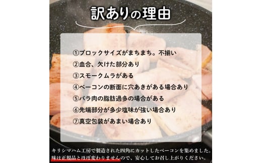 - 【数量限定】 訳あり カット ベーコン 2kg 500g × 4個 冷凍 真空 パック ( 簡単調理 惣菜 大容量 おかず 家庭用 お弁当 加工品 便利 朝食 豚肉 豚バラ 切り落とし おつまみ 酒 ビール ご飯のお供 バーベキュー ステーキ サラダ パスタ 簡易包装 訳あり商品 訳ありベーコン 一口カットベーコン 不揃いベーコン 規格外ベーコン ) キリシマハム工房 山口県 下関市 肉特集