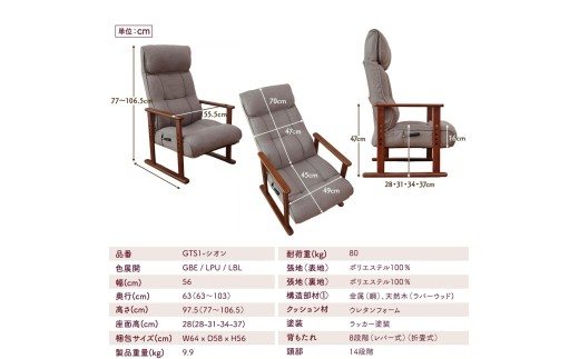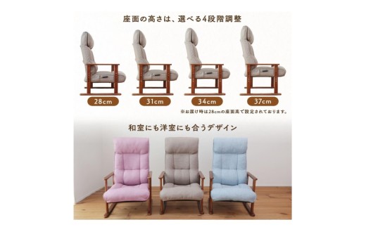 1177 届いてすぐに使える高座椅子 ハイタイプ【けやき(グレージュ)】