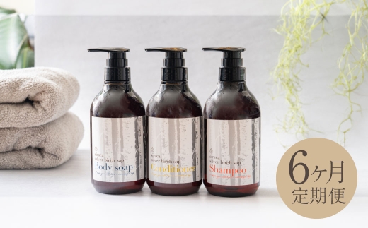 - 【 1ヶ月毎6回定期 】 シラカシャンプー、コンディショナー、ボディーソープセット 国産 シャンプー ボディーソープ 石鹸 美容 北海道産 生活用品 生活雑貨 雑貨 お風呂 日用品 シラカバ 定期 定期便