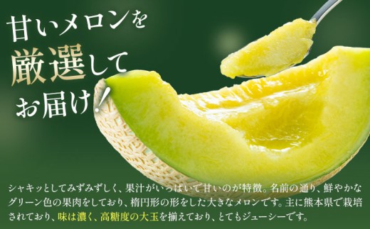 - 【先行予約】肥後グリーンメロン 2玉 2L以上 通常箱【メロンドーム】 有限会社七城町特産品センター《2026年5月中旬-6月中旬頃出荷》熊本県 菊池市 メロン グリーンメロン 果物 フルーツ 熊本県産 送料無料