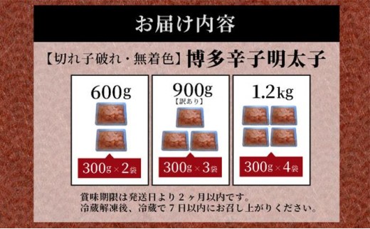 <選べる内容量/種類> 博多辛子明太子(切れ子破れ・無着色)【小分けで便利! 1P300g !】| 短期配送 切子 無着色 魚卵 海鮮 新鮮 家庭用 小分け 訳あり