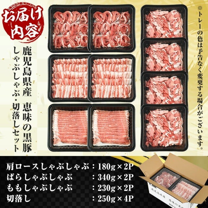 - 鹿児島県産恵味の黒豚 しゃぶしゃぶ+切落しセット(かたロース・豚ばら・ももしゃぶしゃぶ肉と切り落としのセット) 合計2.5kg!大容量!【A-1734H】