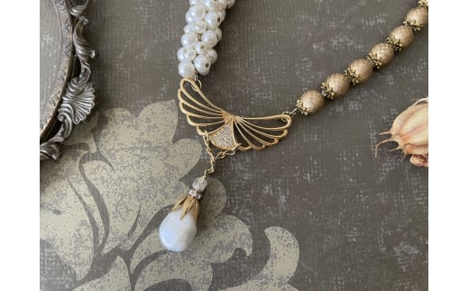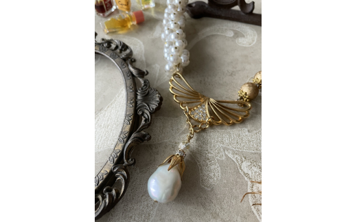 - [一点物] ヴィンテージパーツと湖水パールのアシンメトリーネックレス|ジュエリー アクセサリー ネックレス パール パールネックレス アンティーク 湖水パール 淡水パール バロックパール ヴィンテージ 真珠 コスチュームジュエリー フランス イギリス ヨーロッパ 贈答品 ギフト [2827]