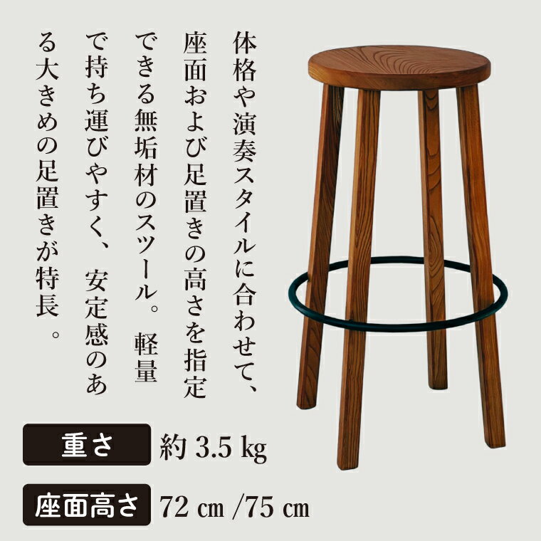 - 【ふるさと納税】楽器演奏用 座面と足置きの高さが選べる無垢材のスツール【椅子 イス セミオーダー ケヤキ スチール 室内楽 舞台 ステージ ギター コントラバス 水戸市 茨城県】(NY-1)