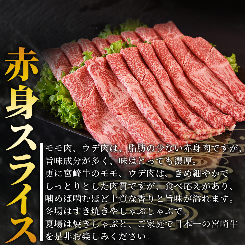 <宮崎牛赤身(ウデorモモ)スライス 1.5kg>2026年3月に順次出荷【 国産 黒毛和牛 牛肉 牛 精肉 スライス ウデ肉 モモ肉 4等級以上 ブランド牛 赤身 旨味 贈答品 ギフト 贈り物 化粧箱 しゃぶしゃぶ グルメ ミヤチク 】