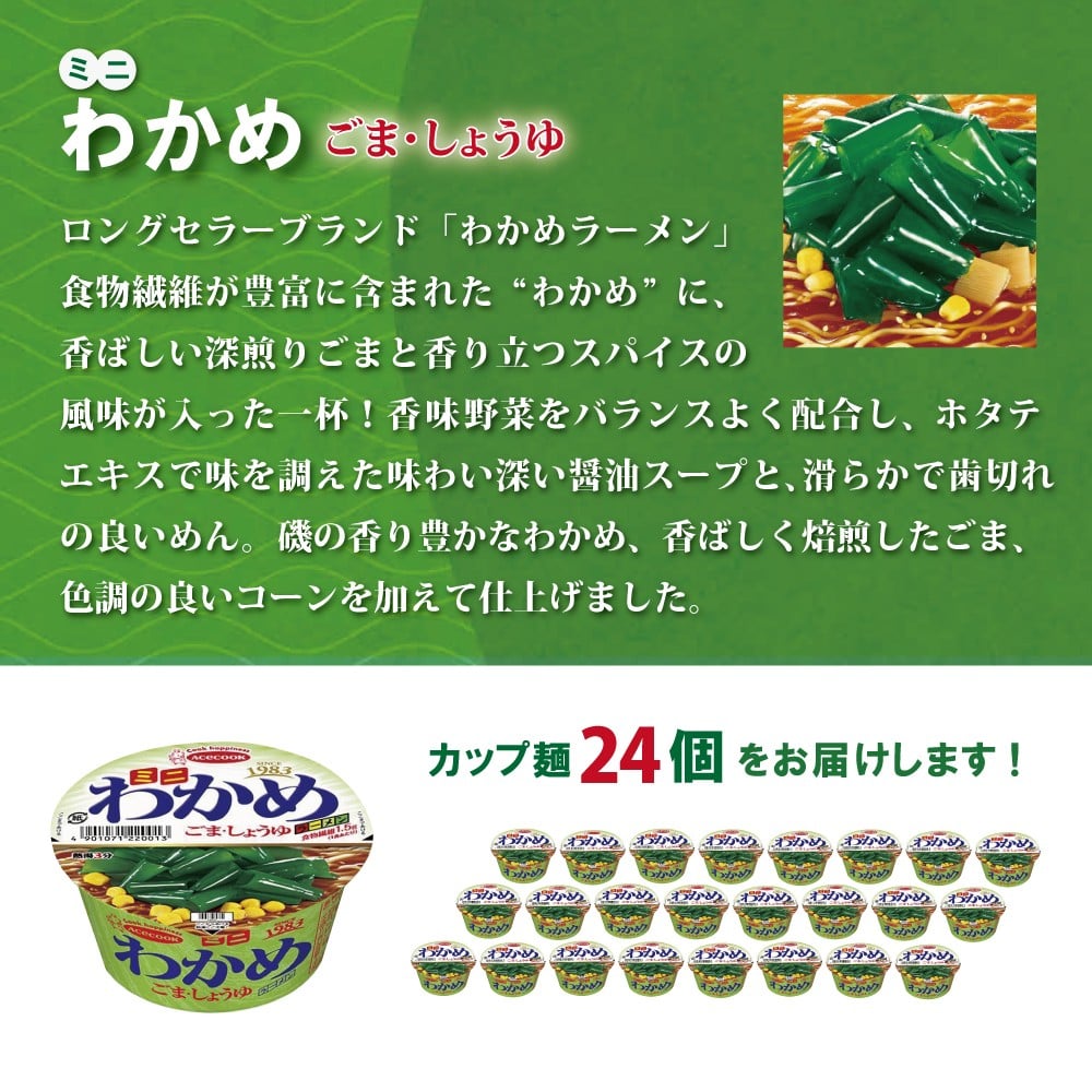 - ミニ わかめラーメン ごま・しょうゆ 38g×24個入[ エースコック ラーメン インスタント カップ麺 即席めん 時短 防災 備蓄 保存食 非常食 箱 ケース ]
