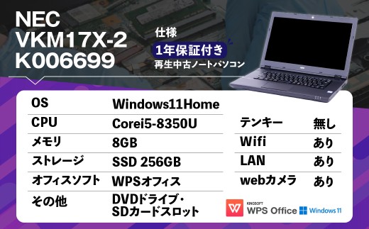 【ふるさと納税】再生品ノートパソコン NEC_VKM17X-2_K006699 電化製品 PC パソコン ノートパソコン