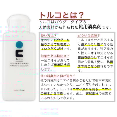 靴の消臭剤 トルコ 2本セット 消臭剤 消臭 靴 くつ 日用品 消耗品 抗菌 抗菌消臭剤 抗菌剤 ホタテ 帆立 天然素材 天然素材100% エチケット 臭い消し 匂い消し ニオイ消し 靴の臭い消し 靴のニオイ消し パウダータイプ Tolco 国産 お取り寄せ 送料無料 千葉県 旭市 鈴木商工株式会社 ssk002