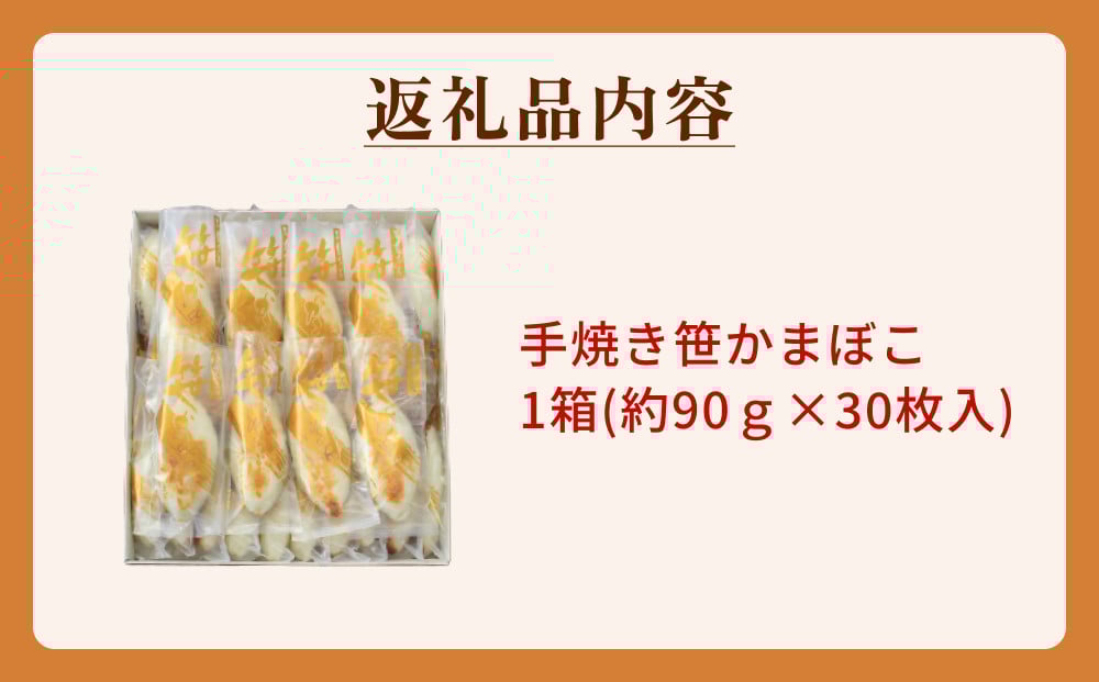 - 「カネハチ橋本かまぼこ店」手焼き笹かまぼこ 30枚入 蒲鉾セット 冷蔵 厚焼き 笹かま 笹かまぼこ 老舗 手作り 宮城県 石巻市 かまぼこ 蒲鉾 名産品 人気 グルメ お取り寄せ カネハチ橋本かまぼこ店 宮城 石巻 送料無料