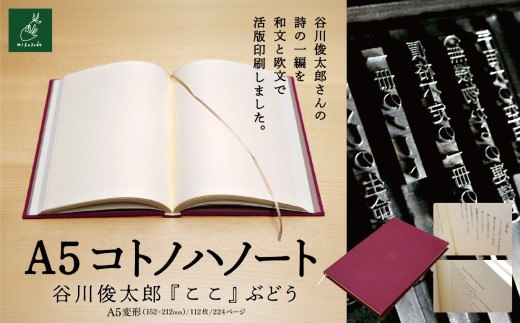 - A5コトノハノート-谷川俊太郎- 『ここ』 ぶどう|A5ノート コトノハノート 谷川俊太郎 ここ 美篶堂 活版印刷 手製本 ノート 伊那市 長野県