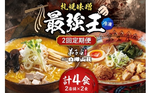 【冷凍/2回定期便】 E/札幌味噌 最強王 弟子屈ラーメン・白樺山荘(各店2食×2回)| ラーメン みそ 北海道 札幌市
