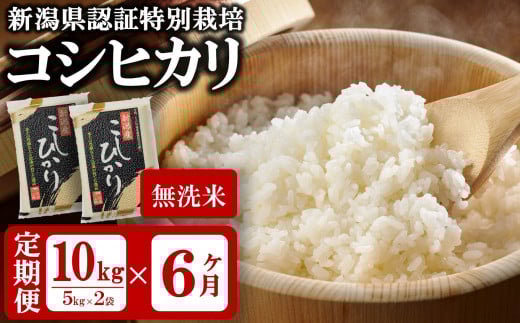- 新米先行予約【令和8年産米・6ヶ月定期便】真空パック 特別栽培米 コシヒカリ 無洗米 10kg(5kg×2袋)×6回(計 60kg) 山波農場 お米 新潟県産 [Y0044]