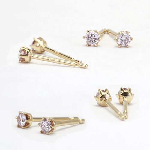 桜ピンクのラウンドブリリアントカットピアス 【ピンクダイヤモンド】 ダイヤモンド ダイヤ ピアス ジュエリー ゴールド k18 ギフト 記念 贈り物 贈答 プレゼント [AH036sa]