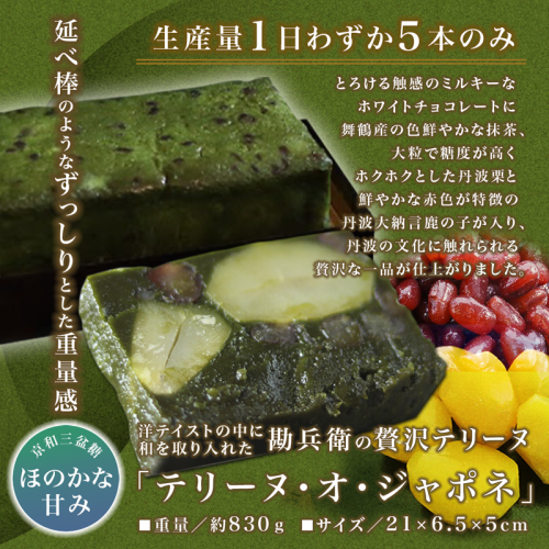 - 勘兵衛 テリーヌ・オ・ジャポネ ケーキ 830g 1本 チョコレート 丹波栗 丹波大納言 プレゼント 贈答 熨斗 御歳暮 お歳暮 和風 ホワイトチョコ 抹茶 小豆 贅沢 洋菓子 和テイスト 栗 チョコレートケーキ テリーヌ チョコテリーヌ ショコラテリーヌ 高級 スイーツ 風呂敷 お取り寄せ グルメ 京都 舞鶴