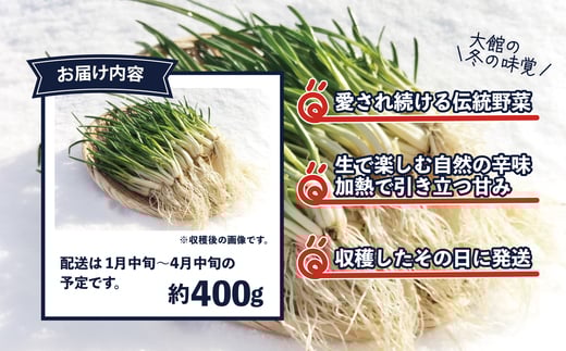 あさつき約400g 50P3262 / 東北 秋田 大館 野菜 新鮮 農産物 農家 農家直送 あさつき