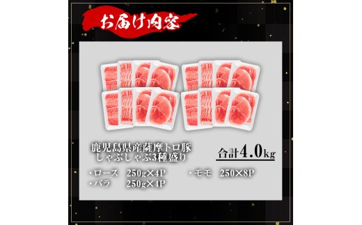 鹿児島県産薩摩トロ豚しゃぶしゃぶ3種盛り (合計4.0kg) 鹿児島県産 豚肉 小分け 【KNOT】 B192