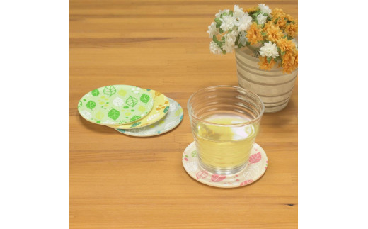 - 友禅和紙コースター スプリングリーフ ピンク タツクラフト