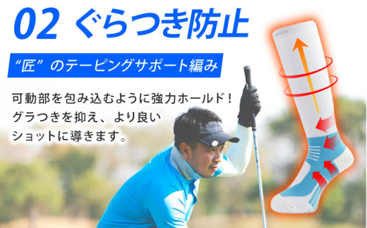 【25-27cm】Runtage 着圧ゴルフソックス アスリートラウンドPRO 先丸タイプ<ライトグレー>【イイダ靴下株式会社】 [HBB007]