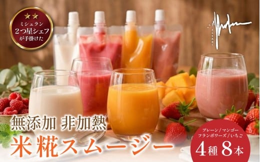 - 米糀生あまさけ&米糀スムージー〈マンゴー フランボワーズ いちご)【4種8本セット】 丹波篠山 パック パウチ フルーツ スイーツ 甘酒 米麹